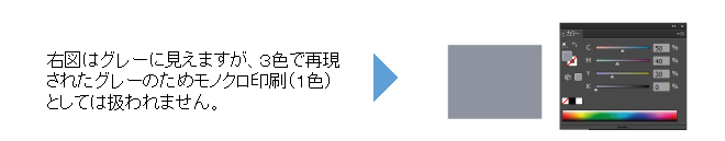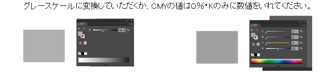 モノクロ印刷(1色)はCMYKの K(グレースケール)のみで作成してください。